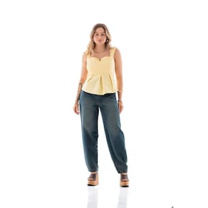 A Calça Jeans Feminina Balloon Brown combina estilo moderno e conforto em uma modelagem ampla e sofisticada. Com cintura alta, shape volumoso no quadril e ajuste mais afunilado na barra, ela garante um visual fashionista sem abrir mão da praticidade. O tom brown (marrom jeans) traz um toque atemporal e versátil, perfeito para composições tanto casuais quanto elegantes.