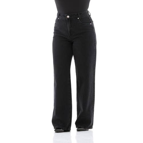Calça Jeans Feminina Arauto Wide Leg Black - Preto - 36