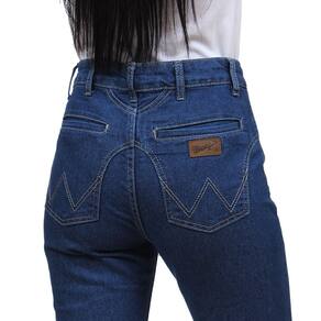 Calça jeans feminina na qualidade Wrangler modelo Flare, fabricada em tecido costurado 72% Algodão, 26% Poliéster e 2% Elastano na cor Azul, possui 3 bolsos na frente e 2 atrás em modelo tradicional, rebites de metal e botão personalizado.