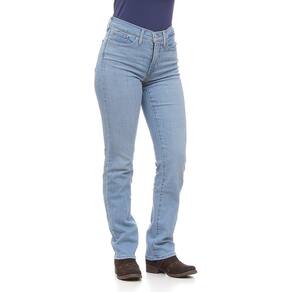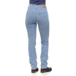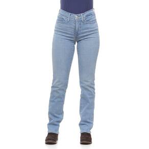Calça jeans feminina Levi's com pernas retas fabricada em tecido 60% Algodão, 23% Viscose, 16% Poliéster e 1% Elastano na cor Azul Clara, possui 3 bolsos na frente e 2 atrás em modelo tradicional, rebites de metal e botão personalizado.