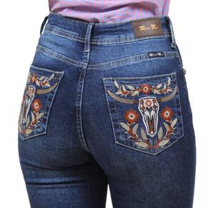 Calça Jeans Feminina Boot Cut Bordada Miss Me 36309 - Azul Marinho - 42