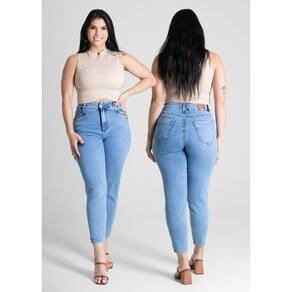 Calça mom confeccionada em jeans. A modelagem mom tem um caimento soltinho nos quadris e coxas ajustando até o tornozelo. Cintura alta Fechamento com botão e zíper Bolsos frontais e bolsos traseiros funcionais Barra simples Modelagem: Mom Tecido: Jeans Tipo de lavagem: Azul Cor: Azul
