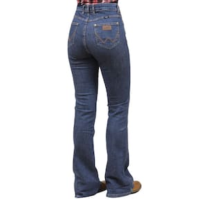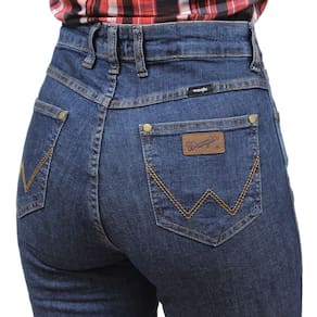 Uma Calça Jeans Feminina na qualidade Wrangler modelo Flare, fabricada em tecido jeans 98% Algodão e 2% Elastano de alta qualidade na cor Azul, possui 3 bolsos na frente e 2 atrás em modelo tradicional, rebites de metal e botão personalizado.