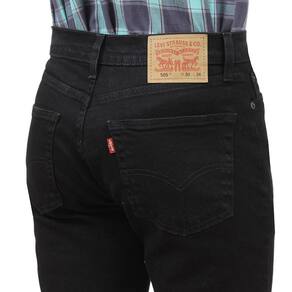 Calça jeans masculina na qualidade Levi's modelo 505 Regular Stretch, ou seja, um pouco mais justa. Esta fabricada em tecido denim de alta qualidade na cor Preto, possui 3 bolsos na frente e 2 atrás em modelo tradicional, rebites de metal e botão personalizado.