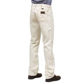 Uma Calça jeans Masculina da marca Wrangler modelo Cowboy Cut, perfeita para os cowboys que precisam de uma calça robusta para a vida no campo ou para o dia a dia da cidade. Esta fabricada em tecido 100% Algodão de alta qualidade na cor Bege, possui três bolsos na frente e 2 atrás em modelo tradicional, rebites de metal e botão personalizado.