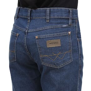 Uma Calça Jeans Masculina da marca West X modelo Cowboy Cut, perfeita para os cowboys que precisam de uma calça confortável e robusta para a vida no campo ou para o dia a dia da cidade. Esta fabricada em tecido jeans de alta qualidade, possui três bolsos na frente e 2 atrás em modelo tradicional, rebites de metal e botão personalizado com detalhes encravados.