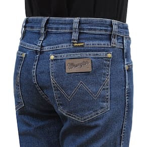 Uma Calça jeans Masculina da marca Wrangler modelo Cowboy Cut, perfeita para os cowboys que precisam de uma calça robusta para a vida no campo ou para o dia a dia da cidade. Esta fabricada em tecido combinado de Algodão, Poliéster e Elastano de alta qualidade na cor Azul, possui três bolsos na frente e 2 atrás em modelo tradicional, rebites de metal e botão personalizado.