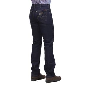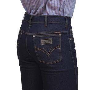 Calça jeans masculina na qualidade Os Vaqueiros, fabricada em tecido 74% Algodão, 24% Poliéster e 2% Elastano na cor Azul Escuro, possui 3 bolsos na frente e 2 atrás em modelo tradicional, rebites de metal e botão personalizado.
