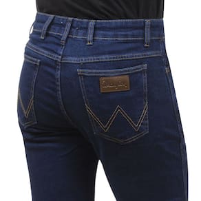 Uma Calça Jeans Masculina da marca Wrangler modelo Slim, mais justa as pernas, perfeita para as pessoas que precisam de uma calça de qualidade para o dia a dia da cidade. Esta fabricada em tecido combinado de Algodão e Elastano de alta qualidade na cor Azul, possui três bolsos na frente e 2 atrás em modelo tradicional, rebites de metal e botão personalizado.