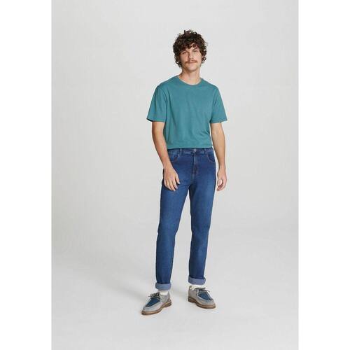 Calça masculina Hering, confeccionada em tecido jeans de algodão, poliéster e elastano. Modelagem tradicional possui recortes retos, cós com passantes para cinto, fechamento por zíper e botão e bolsos funcionais. Combine com camisetas e tenha looks confortáveis e cheios de estilo.