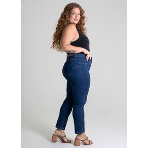 Calça plus size confeccionada em jeans. A modelagem tem tecnologia para dar um UP na silhueta Cintura alta Fechamento com botão metálico e zíper Bolsos frontais falsos e bolsos traseiros funcionais Barra simples Modelagem: Plus size Tecido: Jeans Tipo de lavagem: Azul Cor: Azul escuro