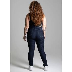 Calça plus size confeccionada em jeans. A modelagem tem quatro pences que valorizam as formas. Cintura alta Fechamento com botão metálico e zíper Bolsos frontais falsos e bolsos traseiros funcionais Barra simples Modelagem: Plus size levanta bumbum Tecido: Jeans Tipo de lavagem: Azul Cor: Azul escuro
