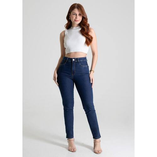 Calça super lipo confeccionada em jeans. A modelagem possui uma cinta proporcionando ajuste perfeito para o seu corpo Cintura alta Fechamento com botão e zíper Bolsos frontais falsos e bolsos traseiros funcionais Barra acabamento simples Modelagem: Super lipo Tecido: Jeans Tipo de lavagem: Azul Cor: Azul médio