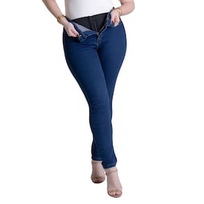 Calça super lipo confeccionada em jeans. A modelagem possui uma cinta proporcionando ajuste perfeito para o seu corpo Cintura alta Fechamento com botão e zíper Bolsos frontais falsos e bolsos traseiros funcionais Barra acabamento simples Modelagem: Super lipo Tecido: Jeans Tipo de lavagem: Azul Cor: Azul