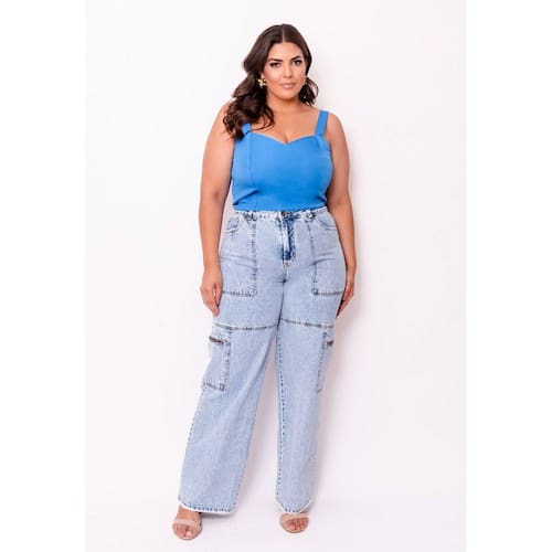 Calça Jeans Cargo Plus Size Wide Leg. Calça Jeans Plus Size com tecido mais claro detalhada com bolsos destacando um diferencial no seu modelo possuindo um belo encaixe ao corpo do usuário.Sendo confeccionada em algodao e um tecido liso proporcionando o melhor conforto,Seus bolsos espalhados pela calça faz um grande diferencial pois possuem ziper e proporciona segurança para guardar qualquer itensou objetos. Para quem buscar inovar seu visual sendo benificiado com conforto essa peça é uma ótima escolha,pois possue uma cor neutra destacada sendo uma ótima combinação para diversidade de looks e tambem usar em diversas ocasiões como shows,eventos sociais,festas, baladas etc.
