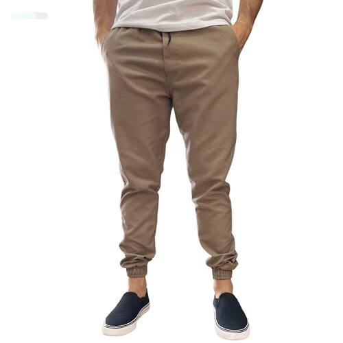 Calça Jogger Masculina Jeans Sarja Com Punho Elástico - Bege - GG