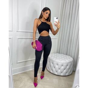 · Calça Modeladora Com Botões e Tiras na Altura do Cós