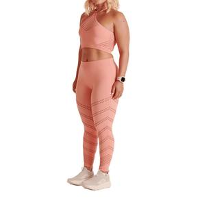 DESCRIÇÃO Legging Seamless Dry (sem costura) com a tecnologia Raschel e Antimicrobial, possui o diferencial de um corte específico de micro furos que proporciona maior respirabilidade e constroem desenhos na peça. Possui o cós largo e anatômico com aplicação de silicone interna que garante segurança durante o movimento na atividade. Os pontos de textura melhoram a sustentaçaõ e modelam a silhueta.