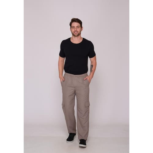 Calça em nylon com bolsos frontais, laterais e traseiros.