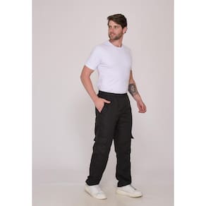 Calça em nylon com bolsos frontais, laterais e traseiros.