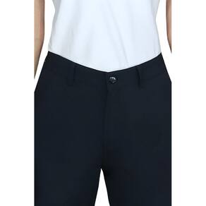 Calça com elástico na metade da cintura (cós meio elástico), permite um maior conforto.