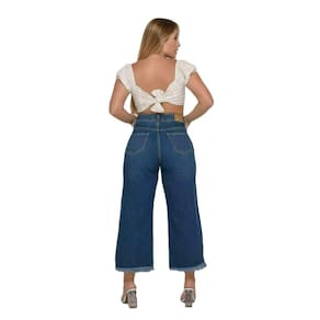 Esta elegante pantacourt apresenta um detalhe encantador no seu corte e na barra, adicionando sofisticação e charme ao seu visual.