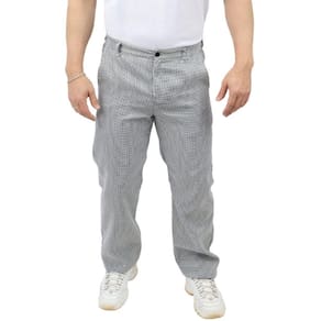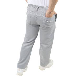 A CALÇA COZINHEIRO é confeccionada em tecido PIED POULE, estampa pensada para camuflar eventuais manchas que possam ocorrer na cozinha.