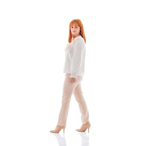 A calça slouchy também conhecida como balloon é descolada e confortável. Tem a cintura alta, geralmente com pences abaixo do cós e com volume nas pernas e quadril até chegar ao tornozelo dando uma leve afunilada. Seu comprimento é acima do tornozelo, podendo dobrar a barra dando um toque despojado e confortável ao look. Super adotada pelas fashionistas seja no inverno ou verão, transita pelos estilos casual, despojado até o mais chique.  Podendo compor os looks usando salto, botas ou até o simples e indispensável tênis!