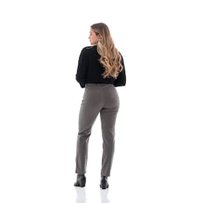 Principais Características · Pence abaixo do Cós · Cintura Alta · Mais larga do quadril e coxas · Tornozelo levemente estreito A calça slouchy também conhecida como balloon é descolada e confortável. Tem a cintura alta, geralmente com pences abaixo do cós e com volume nas pernas e quadril até chegar ao tornozelo dando uma leve afunilada. Seu comprimento é acima do tornozelo, podendo dobrar a barra dando um toque despojado e confortável ao look. Super adotada pelas fashionistas seja no inverno ou verão, transita pelos estilos casual, despojado até o mais chique. Podendo compor os looks usando salto, botas ou até o simples e indispensável tênis! Composição: 98%Algodão 2%Elastano Modelo veste tamanho: 36 Medidas do Modelo: Altura: 160cm, Cintura: 71cm, Quadril: 99cm