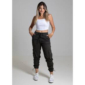 Cintura altaFechamento com cordãoBolsos frontais, laterais cargo e traseiros funcionaisBarra com elásticoModelagem: JoggerTecido: SarjaTipo de lavagem: ColorCor: Verde