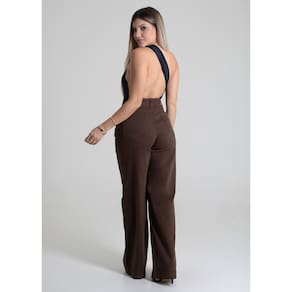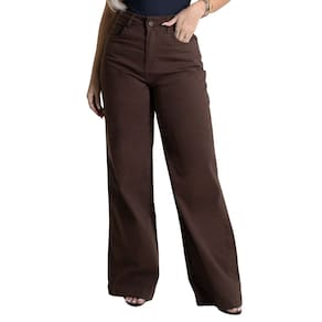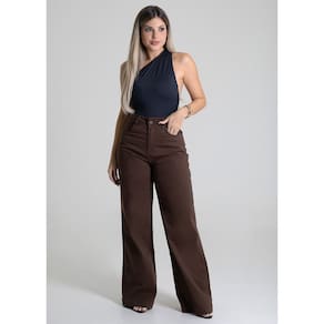 Calça feminina confeccionada em sarja. O modelo possui cintura super alta, gancho no lugar e caimento amplo da coxa até a barra. Cintura alta Fechamento através de um botão e zíper Bolsos frontais e posteriores funcionais Barra simples Tecido: Sarja Tipo de Lavagem: Color Cor: Marrom