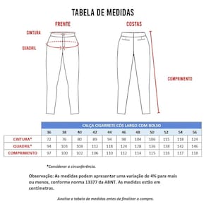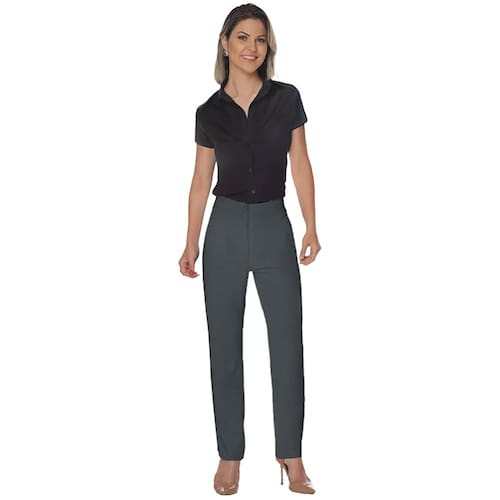 A CALÇA SOCIAL feminina tipo Cigarrete com bolsos, é produzida em tecido Milano Plus, da Doptex, a composição do tecido é de 74% Poliéster, 22% Viscose e 4% Elastano.