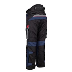 DESCRIÇÃO DO PRODUTO CONSTRUÇÃO • Calça em poliéster 600D de alta resistência; • Poliéster Rip Stop.poliéster 300D nos bolsos laterais; • Recorte em tecido elastano posicionado estrategicamente.garantindo conforto e praticidade durante a pilotagem; • Bolsos frontais com zíper; • Protetores em EVA na parte traseira; • Forro térmico removível; • Zíper de expansão nas pernas;