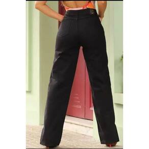 Calça Feminina Wide Leg Preta, confeccionado em tecido sarja,fechamento em botão e zíper, bolsos dianteiros e traseiros funcionais, simplesmente um arrazo de calça.