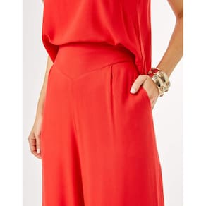 -Possui cintura alta com cós aplicado em formato geométrico e finalizado com elástico embutido pespontado costas, que deixa super fácil e prático de vestir! Detalhe de prega frontal e bolso faca.