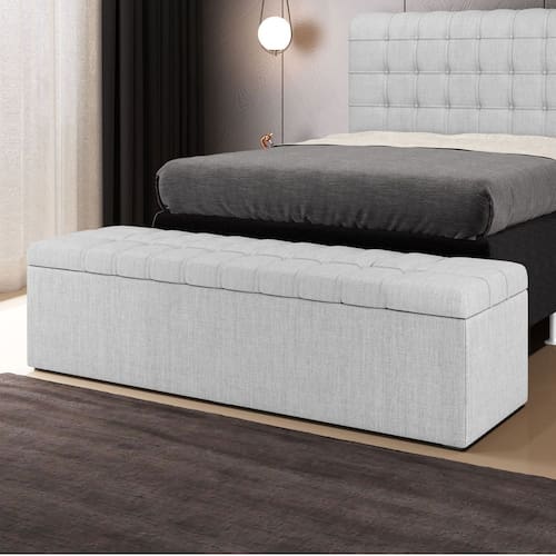 *Características do Produto* Madeira de eucalipto proveniente de reflorestamento. Fixação com grampos galvanizados. Espuma Poliuretano D20. Produto Costurado. Revestimento: Linho Possui pés: Sim, 4 sapatas. Com baú interno espaçoso. Embalagem: plástico bolha, papelão ondulado, malha, plástico Garantia de 3 meses contra defeitos de fábrica.