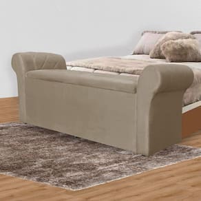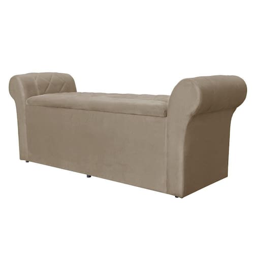 Calçadeira Báu Cancun 140cm Suede Cappuccino - Vallisa Decor