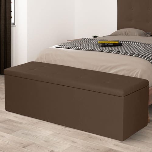 Calçadeira Baú Casal 1,40m Berlim Material Sintético Marrom Dal Poz Estofados