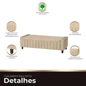Eleve o estilo do seu quarto com a Calçadeira Baú Estofada Alicia, uma fusão perfeita de modernidade e sofisticação. Seu design estiloso e detalhes em formato de ripas na frente conferem uma estética única, enquanto o assento liso adiciona um toque de elegância discreta. Além de funcional como baú, esta calçadeira é mais do que um móvel; é uma peça de design que transforma o ambiente. Com uma decoração inigualável, a Alicia é o complemento perfeito para o seu quarto, proporcionando um toque de elegância que não passará despercebido. Renove o seu espaço com esta calçadeira que transcende o convencional.