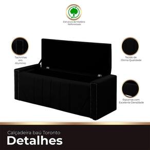 Calçadeira Baú Casal Estofada Toronto Veludo Preto