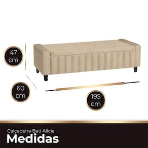 Eleve o estilo do seu quarto com a Calçadeira Baú Estofada Alicia, uma fusão perfeita de modernidade e sofisticação. Seu design estiloso e detalhes em formato de ripas na frente conferem uma estética única, enquanto o assento liso adiciona um toque de elegância discreta. Além de funcional como baú, esta calçadeira é mais do que um móvel; é uma peça de design que transforma o ambiente. Com uma decoração inigualável, a Alicia é o complemento perfeito para o seu quarto, proporcionando um toque de elegância que não passará despercebido. Renove o seu espaço com esta calçadeira que transcende o convencional.