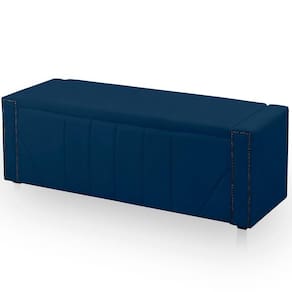 Calçadeira Baú Casal King Size Estofada Toronto Veludo Cor Azul Marinho