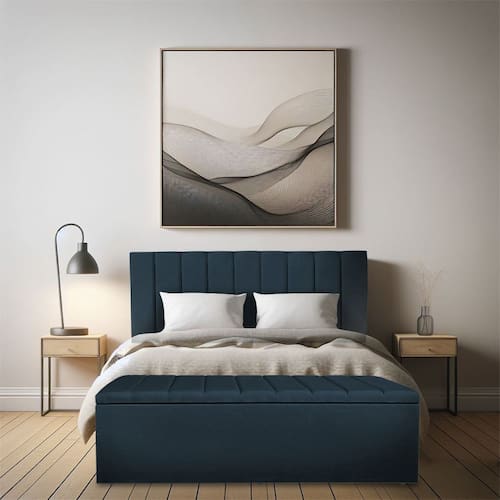 Calçadeira Baú Casal Queen 1,60m Londres Suede Azul Marinho Dal Poz Estofados