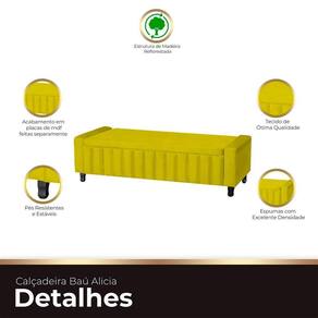 Eleve o estilo do seu quarto com a Calçadeira Baú Estofada Alicia, uma fusão perfeita de modernidade e sofisticação. Seu design estiloso e detalhes em formato de ripas na frente conferem uma estética única, enquanto o assento liso adiciona um toque de elegância discreta. Além de funcional como baú, esta calçadeira é mais do que um móvel; é uma peça de design que transforma o ambiente. Com uma decoração inigualável, a Alicia é o complemento perfeito para o seu quarto, proporcionando um toque de elegância que não passará despercebido. Renove o seu espaço com esta calçadeira que transcende o convencional.