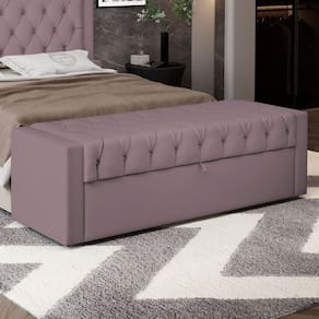 Calçadeira Báu King Size Atena 195cm Capitonê Veludo Rosê - Desk Design