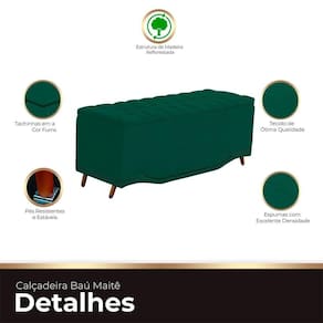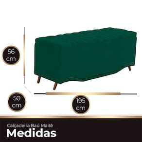 Calçadeira Baú King Size Estofada Maitê Veludo Cor Verde Esmeralda