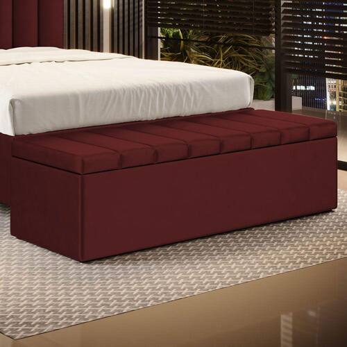 Características do Produto: Madeira de eucalipto proveniente de reflorestamento Fixação com grampos galvanizados Espuma Poliuretano D20 Tamanho: Queen para cama de 158 cm Possui pés: Sim Tipo de pés: 4 sapatas Possui baú interno Embalagem: plástico bolha, papelão ondulado, malha, plástico Garantia de 3 meses contra defeitos de fábrica.