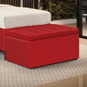 A Calçadeira Navi traz conforto e elegância, com excelente custo benefício. Possui um design único e detalhes que dão um toque de sofisticação e um ótimo acabamento. Feita de matéria prima de qualidade e ótimo tecido, para garantir durabilidade e manter a beleza de seu quarto por muito tempo. O produto possui baú interno para armazenagem de itens e organização. Esta calçadeira irá proporcionar toda a beleza para seu ambiente. Adquira já!Dimensões do ProdutoLargura: 90 cmAltura: 45 cmProfundidade: 46 cmPeso: 10 KgDimensões do Produto EmbaladoLargura: 90 cmAltura: 47 cmProfundidade: 48 cmPeso: 12 KgCaracterísticas do Produto:Madeira de eucalipto proveniente de reflorestamentoFixação com grampos galvanizadosEspuma Poliuretano D20Revestimento: Couro ArtificialCor: VermelhoTamanho: Solteiro para cama de 88 cmPossui pés: SimTipo de pés: 4 sapatasPossui baú internoEmbalagem: plástico bolha, papelão ondulado, malha, plásticoGarantia de 3 meses contra defeitos de fábrica.Diferenciais: - Madeira de alta qualidade- Design moderno- Material resistente- Ótimo acabamento- Estrutura reforçadaSistema de Montagem: O produto é enviado montado.Manual de Montagem: SimVolumes: 1 VolumeMontagem: Recomendamos que seja feita por um profissionalRecomendação de Limpeza: Utilize pano levemente úmidoObservações importantes- Produto para uso residencial em ambiente interno, não devendo ficar exposto diretamente ao sol, calor e umidades excessivas.- Pode haver alguma diferença de tonalidade entre a imagem e o produto real, por conta do tratamento de imagens e a calibração de cores do seu monitor.- As imagens são meramente ilustrativas, não acompanham objetos de decoração e eletrônicos.