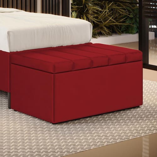 Características do Produto: Madeira de eucalipto proveniente de reflorestamento Fixação com grampos galvanizados Espuma Poliuretano D20 Tamanho: Solteiro para cama de 88 cm Possui pés: Sim Tipo de pés: 4 sapatas Possui baú interno Embalagem: plástico bolha, papelão ondulado, malha, plástico Garantia de 3 meses contra defeitos de fábrica.