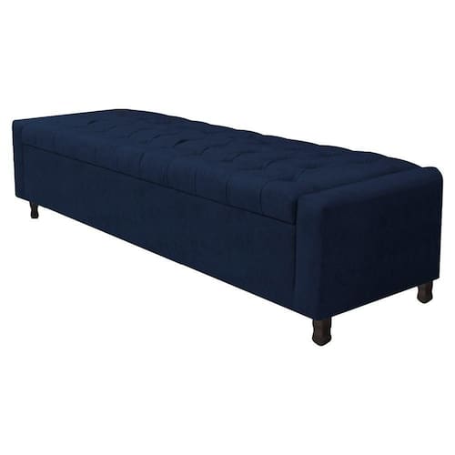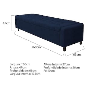 Calçadeira Baú Queen Everest P02 160 Cm Para Cama Box Suede - Doce Sonho Móveis Cor Azul Marinho